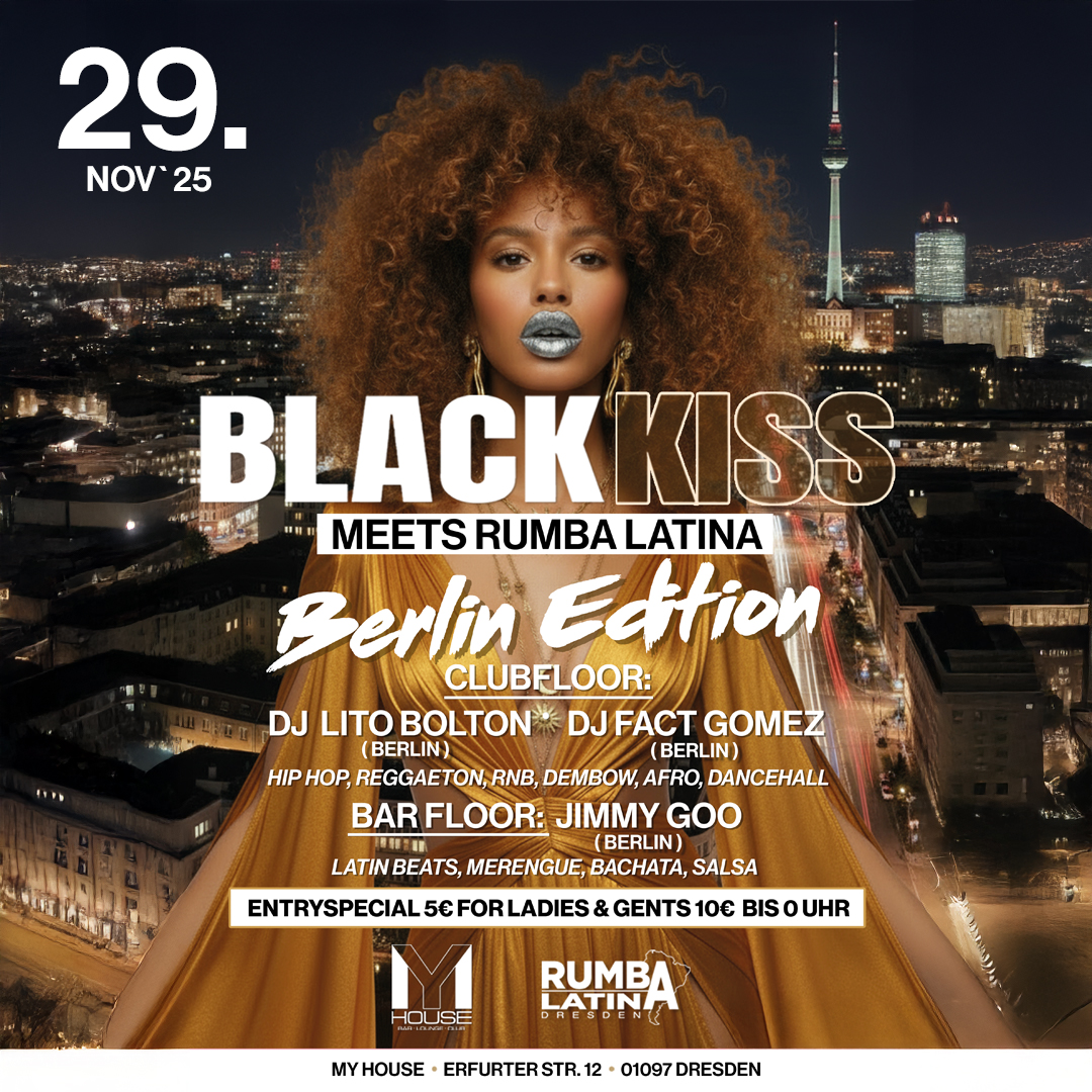 Du liebst Hip Hop, Reggaeton, AfroBeats & Latin Hits, dann ist das DEIN EVENT, die BLACK KISS Party ist ein absoluter Pflichttermin in Dresden. Mit am Start ist RUMBA LATINA, eine der erfolgreichsten Latin Partyreihen Dresdens! ![]()