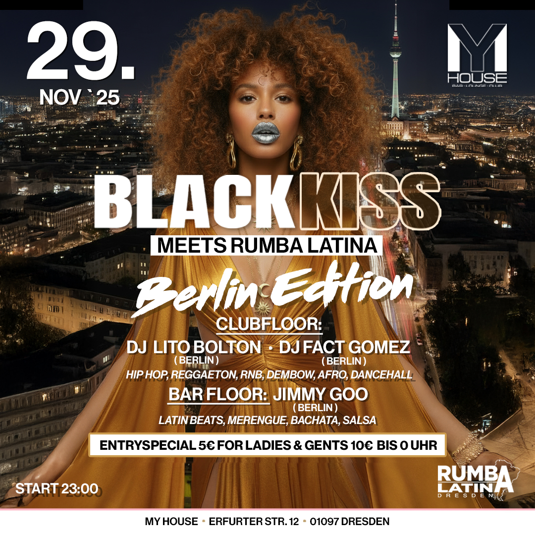 Du liebst Hip Hop, Reggaeton, AfroBeats & Latin Hits, dann ist das DEIN EVENT, die BLACK KISS Party ist ein absoluter Pflichttermin in Dresden. Mit am Start ist RUMBA LATINA, eine der erfolgreichsten Latin Partyreihen Dresdens! ![]()